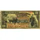 | Obverse description | Black on yellow and ochre, in calchography and lithography. On the right, figure of standing woman, with coat of Arms of the Republic (Allegory of Commerce); on the left, figure of a seated woman in front of a globe with stripe `Ordem e Progresso` (Order and Progress). Print and series number in black. Order number in red. |