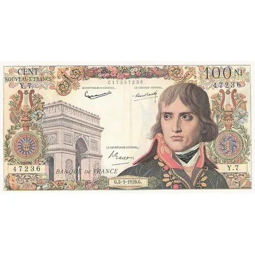 | Obverse lettering | CENT 100 NF NOUVEAUX FRANCS BANQUE DE FRANCE |