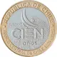 Displays the Escudo Nacional (National Coat of Arms) at the center of the core. Beneath it are the year 2025, the denomination “100”, and the word “PESOS”, overlapping with the ring. Surrounding the design on the ring are laurel branches. |