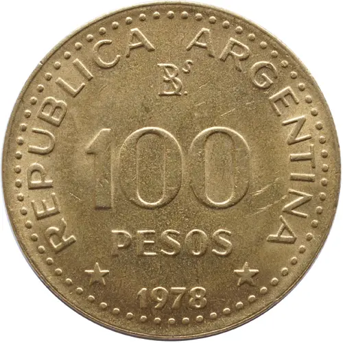 | Obverse lettering | REPUBLICA ARGENTINA 100 PESOS * 1978 * (Translation: Republic of Argentina 100 Pesos 1978) |