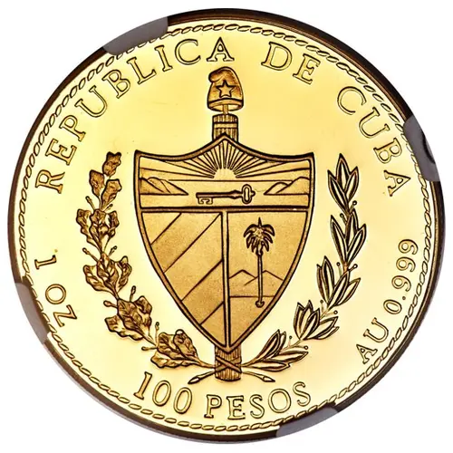 | Obverse lettering | REPUBLICA DE CUBA 1 OZ 100 PESOS AU 0.999 (Translation: Republic of Cuba 1 ounce 100 Pesos gold 0.999) |