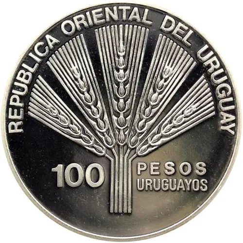 | Obverse lettering | REPUBLICA ORIENTAL DEL URUGUAY 100 PESOS URUGUAYOS |