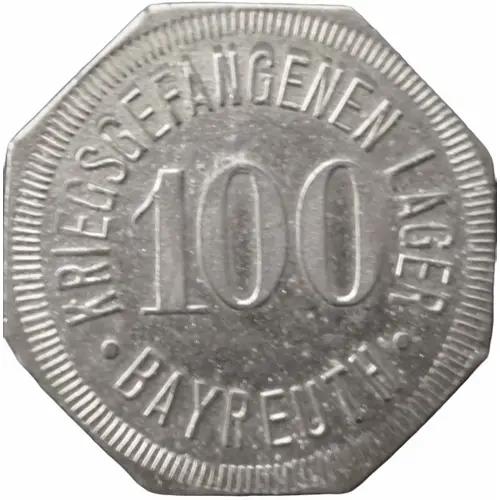 | Obverse lettering | KRIEGSGEFANGENEN-LAGER 100 ● BAYREUTH ● |