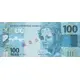 | Reverse lettering | BANCO CENTRAL DO BRASIL 100 100 MINISTRO DA FAZENDA PRESIDENTE DO BANCO CENTRAL DO BRASIL GAROUPA CEM REAIS REAIS CASA DA MOEDA DO BRASIL (Translation: Brazilian Central Bank 100 100 Finance Minister President of the Brazilian Central Bank Grouper One hundred Reais Brazilian Mint) |
