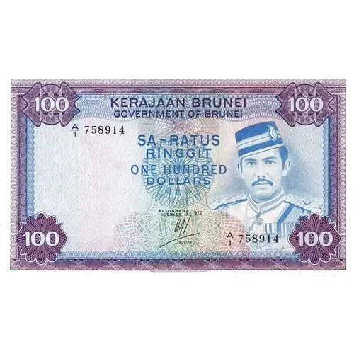 | نوشتههای روی اسکناس | KERAJAAN BRUNEI GOVERNMENT OF BRUNEI SA-RATUS RINGGIT ONE HUNDRED DOLLARS SULTAN |