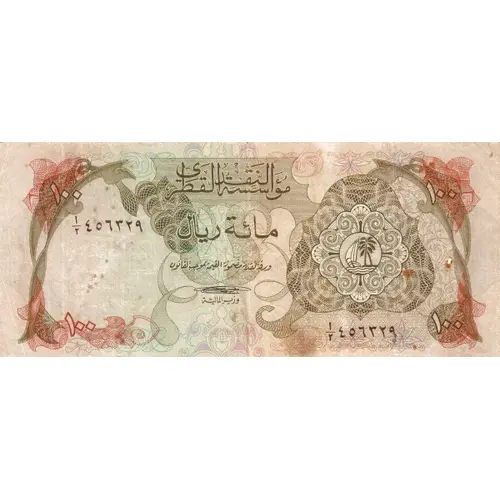 THE QATAR MONETARY AGENCY ONE HUNDRED RIYALS |