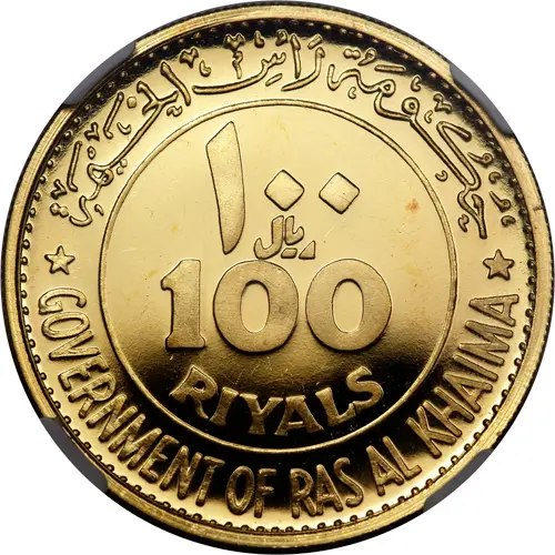 | Obverse lettering | ★ حُكُومَةُ رَأسِ الخَيمَة ★ ١٠٠ ريال 100 RIYALS GOVERNMENT OF RAS AL KHAIMA (Translation: Government of Ras al-Khaimah 100 Riyals) |