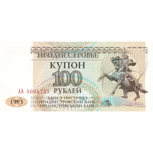 | Надписи лицевой стороны | ПРИДНЕСТРОВЬЕ КУПОН 100 РУБЛЕЙ БАНКЭ НИСТРЯНЭ ПРИДНЕСТРОВСКИЙ БАНК ПРІДНІСТРІВСЬКИЙ БАНК (Translation: Transnistria, Coupon, 100 Rubles, Bank of Transnistria) |