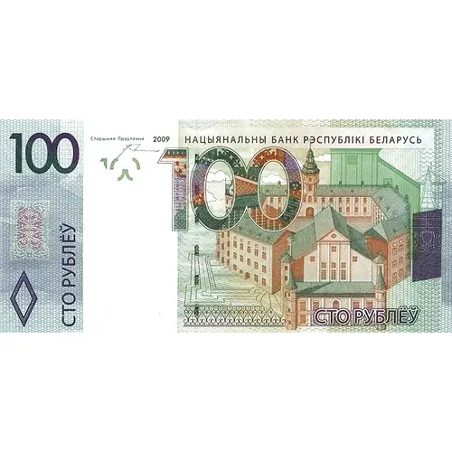 | Legenda do anverso | СТО РУБЛЁЎ 100 2009 НАЦЫЯНАЛЬНЫ БАНК РЭСПУБЛІКІ БЕЛАРУСЬ СТО РУБЛЁЎ (Translation: One Hundred Rubles, National Bank of the Republic of Belarus) |