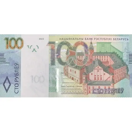 | Надписи оборотной стороны | 100 100 РУБЛЁЎ (Translation: 100 Rubles) |