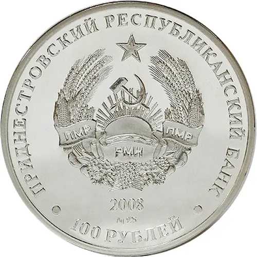 | Obverse lettering | ПРИДНЕСТРОВСКИЙ РЕСПУБЛИКАНСКИЙ БАНК 2008 Ag 925 • 100 РУБЛЕЙ • (Translation: Transnistrian Republican Bank 100 Rubles) |