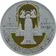 | Beschrijving keerzijde | On the left is a stylized image of a cross and the inscription `POLOTSKI SPASA-EUFRASINNEUSKI MITRAPALIICHY`, on the right is a stylized image of a cross and the inscription `ZHANOCHI MONASTERY 900 GADOU`; in the center is a stylized image of angels crowning Euphrosyne of Polotsk against the background of a women`s monastery, and the year of its creation `1125`; at the bottom is a circular ornament. |