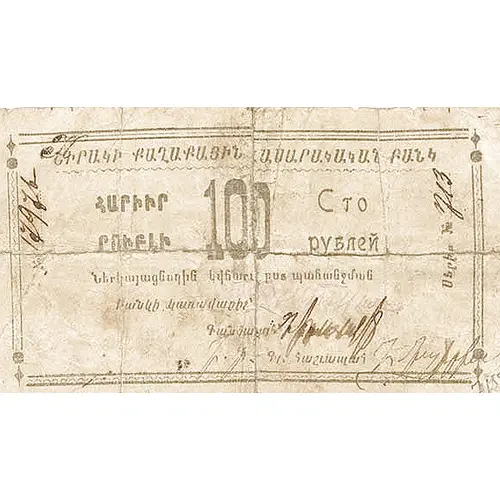 | Obverse description | Grey. Text in Armenian, stamped signature |