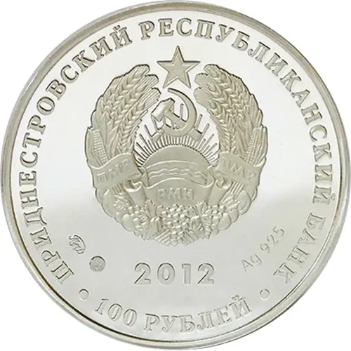| Obverse lettering | ПРИДНЕСТРОВСКИЙ РЕСПУБЛИКАНСКИЙ БАНК ММД Ag 925 2012 • 100 РУБЛЕЙ • (Translation: Transnistrian Republican Bank 100 Rubles) |