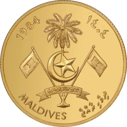 | Legenda awersu | 1984 ١٤٠٤ MALDIVES ދިވެހި ރާއްޖޭ (Translation: 1984-1404 Maldives) |