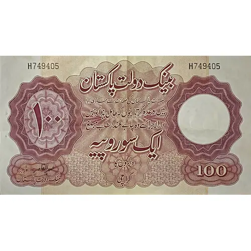 (Translation: State Bank of Pakistan One Hundred Rupees) |