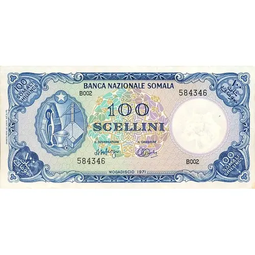 | Legenda del rovescio | 100 SOMALI SHILLINGS |