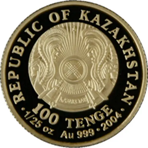 | Obverse lettering | REPUBLIC OF KAZAKHSTAN 100 TENGE • 1/25 oz Au 999 • 2004 • |