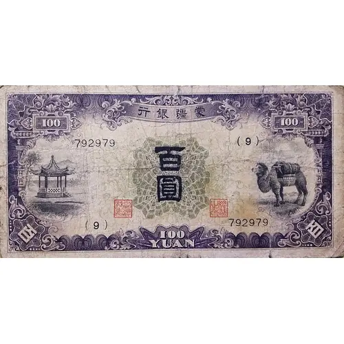 行銀疆蒙 百 圓 (Translation: Mengchiang Bank One Hundred Yuan) |