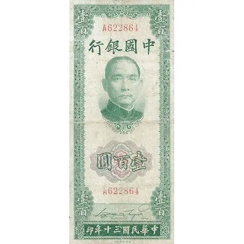 | Obverse lettering | 行銀國中 圓百壹 (Translation: Bank of China One Hundred Yuan) |