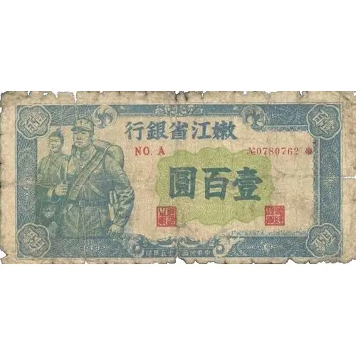 百壹 - 百壹 行銀省江嫩 圓百壹 印年五十三國民華中 百壹 - 百壹 (Translation: 100 (Yuan) - 100 (Yuan) Bank of Inner Chiang Province 100 Yuan Printed in Year 35 of the Republic of China 100 (Yuan) - 100 (Yuan)) |
