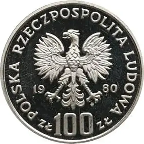 | Obverse lettering | POLSKA RZECZPOSPOLITA LUDOWA 19 80 mw ZŁ 100 ZŁ |