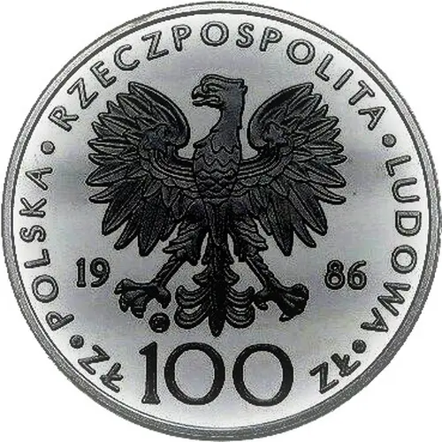 | Obverse lettering | · POLSKA RZECZPOSPOLITA LUDOWA · 19 86 CHI ZŁ 100 ZŁ |