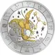 | Descrição do reverso | Crab to right above clouds, constellation with diamonds at right, 12 zodiac signs around the rim. |