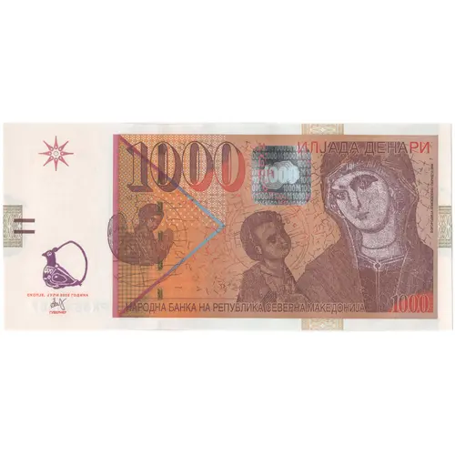 | Rückseitenlegende | Народна Банка на Република Северна Македонија Илјада Денари (Translation: National Bank of Republic of North Macedonia One Thousand Denari) |