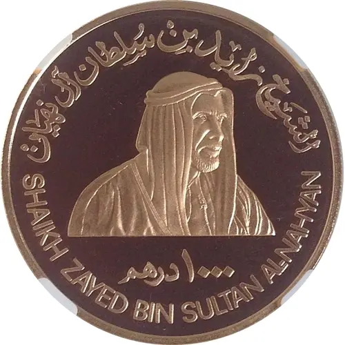 | Obverse lettering | ْالشَيخ زايد بِنْ سُلطان آل نَهيان ١٠٠٠ درهمـ SHAIKH ZAYED BIN SULTAN AL-NAHYAN (Translation: Sheikh Zayed bin Sultan Al Nahyan 1000 Dirhams) |
