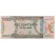توضیحات روی اسکناس Bank of Guyana crest at centre. Map of Guyana showing mineral resources atright. Stylized flower, 1/2 at left edge and 1/2 at right edge. Wide security strip to left of map. Olive green on orange and rose multicolour underprint. Serial numbers in black, one vertical at left and one upper right with ascending size numbers
