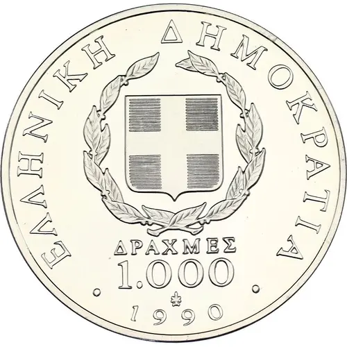 | Obverse lettering | ΕΛΛΗΝΙΚΗ ΔΗΜΟΚΡΑΤΙΑ ΔΡΑΧΜΕΣ 1000 1990 (Translation: GREEK DEMOCRACY DRACHMES 1000 1990) |