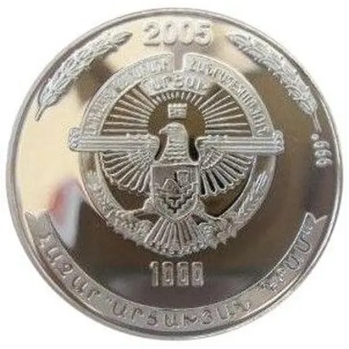 Obverse lettering 2005 ԼԵՌՆԱՅԻՆ ՂԱՐԱԲԱՂԻ ՀԱՆՐԱՊԵՏՈՒԹՅՈՒՆ ԱՐՑԱԽ 1000 ՀԱՋԱՐ `ԱՐՑԱԽՅԱՉ ԴՐԱՄ` 999