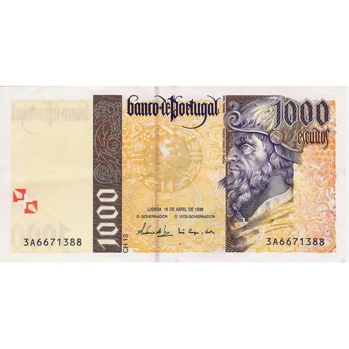 | 正面铭文 | Banco de Portugal 1000 Escudos LISBOA 18 DE ABRIL DE 1996 CH13 (Translation: Bank of Portugal 1000 Escudos Lisbon, April 18, 1996.) |