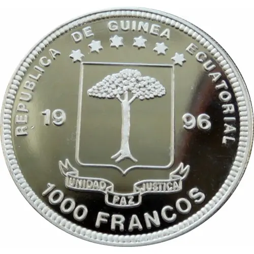 | Obverse lettering | REPUBLICA DE GUINEA ECUATORIAL 1996 UNIDAD PAZ JUSTICA 1000 FRANCOS |
