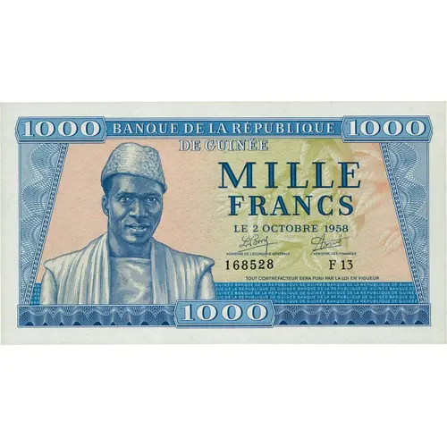 | 表面の銘文 | Banque de la République de Guinée mille francs |