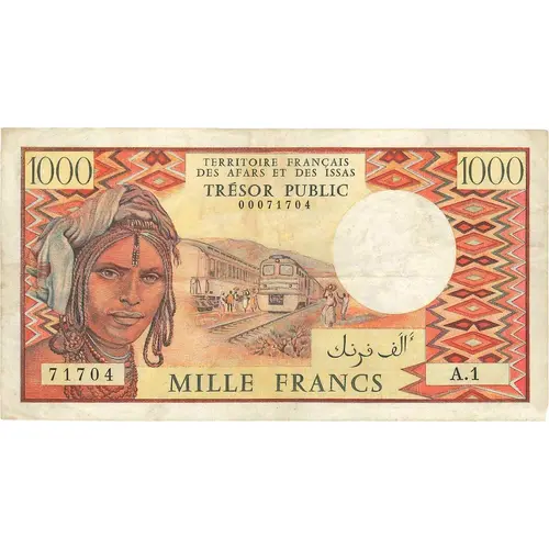 (Translation: French Territory of Affars and Issas. Public treasury. One thousand francs.)