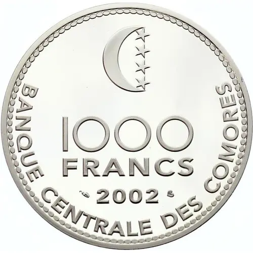 | Obverse lettering | 1000 FRANCS 2002 BANQUE CENTRALE DES COMORES |