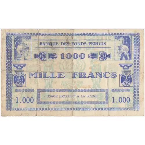 | Obverse lettering | BANQUE DES FONDS PERDUS 1 000 MILLE FRANCS USAGE EXCLUSIF À LA SCÈNE |