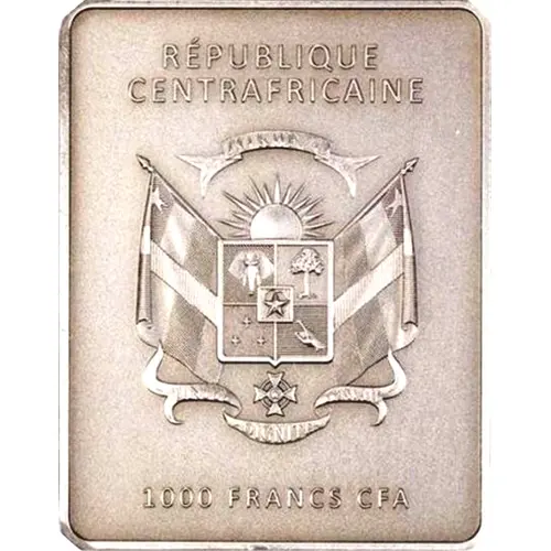 RÉPUBLIQUE CENTRAFRICAINE ZO KWE ZO UNITE DIGNITE TRAVAIL 1000 FRANCS CFA (Translation: Central African republic All people are people Unity Dignity Work 1000 Francs CFA) |