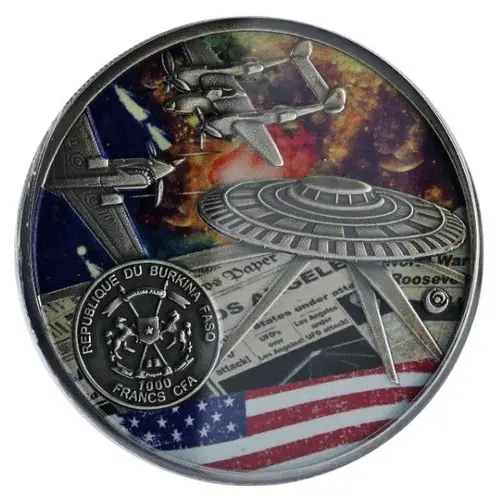 | Reverse lettering | BATTLE OF LOS ANGLES 1942 - 2017 1 OZ AG 0.999 |