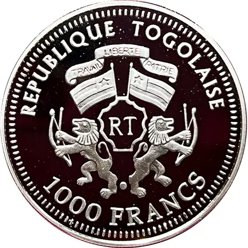 | Obverse lettering | REPUBLIQUE TOGOLAISE 1000 FRANCS (Translation: Togolese Republic Labour Freedom Homeland) |
