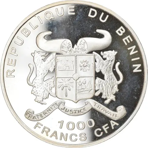 | Obverse lettering | REPUBLIQUE DU BENIN FRATERNITE JUSTICE TRAVAIL 1000 FRANCS CFA |