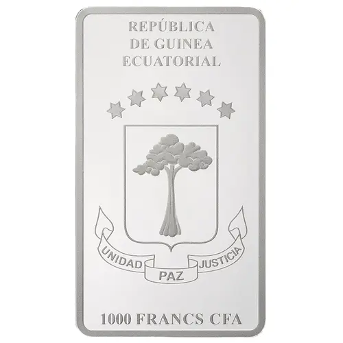 Leyenda del anverso REPÚBLICA DE GUINEA ECUATORIAL UNIDAD PAZ JUSTICIA 1000 FRANCS CFA