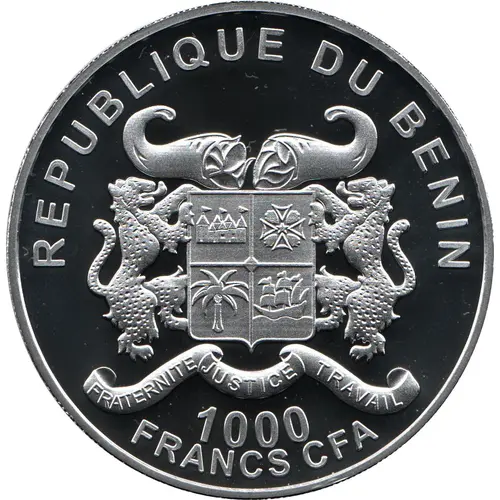 | Obverse lettering | REPUBLIQUE DU BENIN FRATERNITE TRAVAIL JUSTICE 1000 FRANCS CFA |