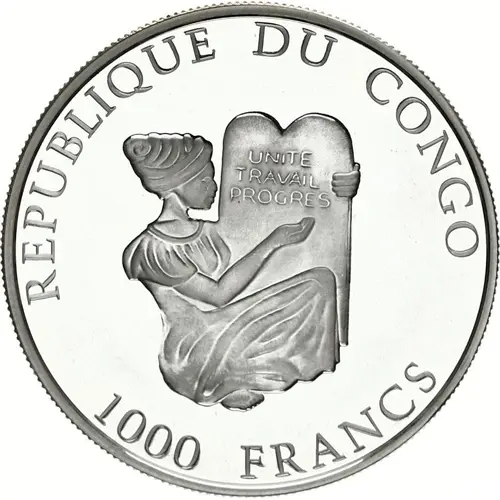 | Legenda del dritto | REPUBLIQUE DU CONGO 1000 FRANCS (Translation: Republic of the Congo) |