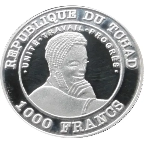| Obverse lettering | REPUBLIQUE DU TCHAD ·UNITÉ·TRAVAIL·PROGRÈS· 1000 Francs |