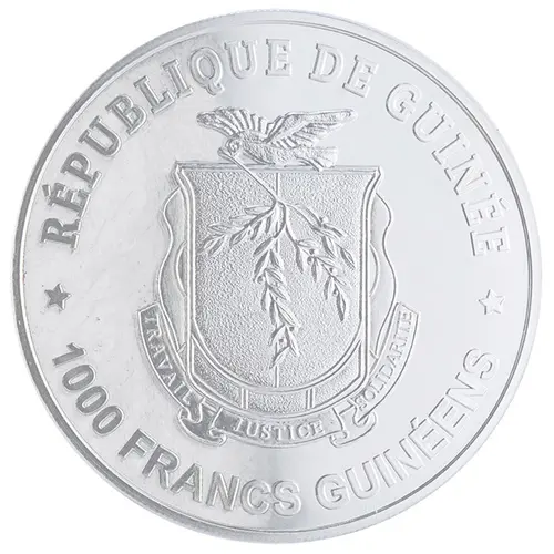 | Obverse lettering | * RÉPUBLIQUE DE GUINÉE * 1000 FRANCS GUINÉENS (Translation: Republic of Guinea 1000 Guinean Francs) |