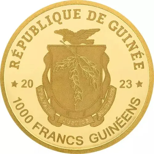 | Obverse lettering | RÉPUBLIQUE DE GUINÉE 2023 TRAVAIL JUSTICE SOLIDARITE 1000 FRANCS GUINEENS (Translation: Republic of Guinea Work Justice Solidarity 1000 Guinean francs) |