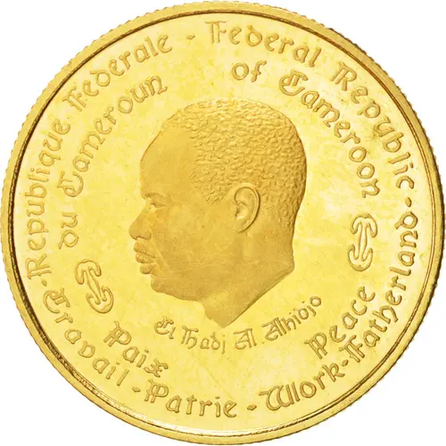 Obverse description Head of President El Hajj Ahmadou Ahidjo facing left.